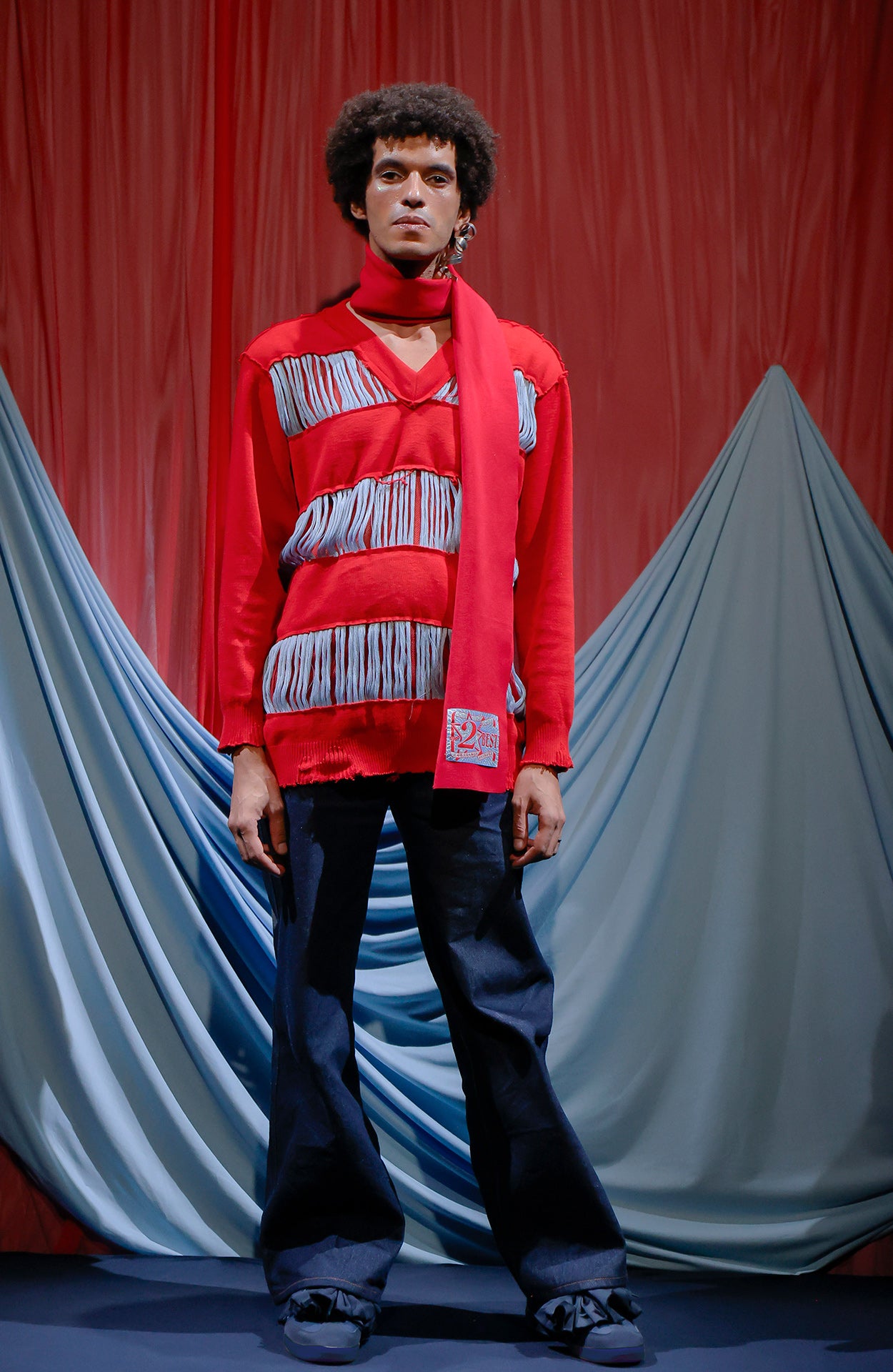 Sapatilhas exclusivas personalizadas pela estilista Constança Entrudo, usadas no ModaLisboa. Uma peça de edição limitada que celebra a união entre moda e arte.