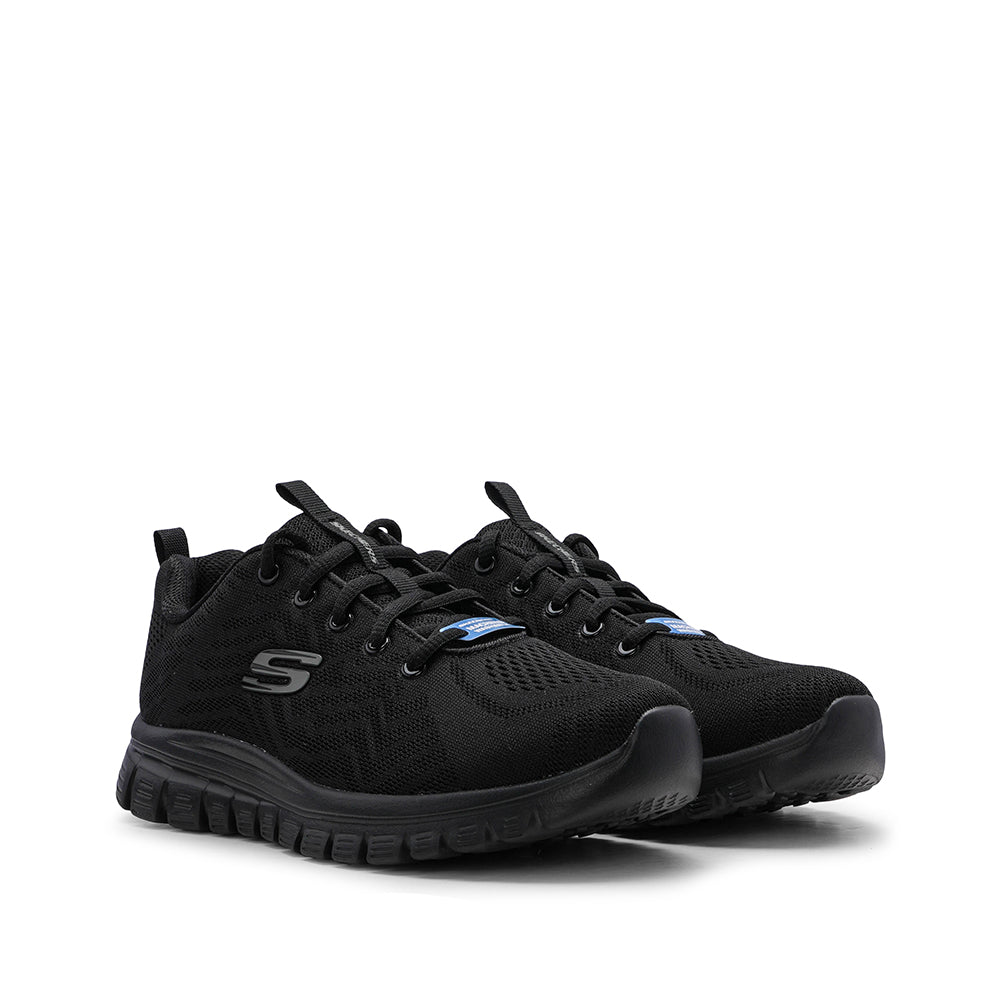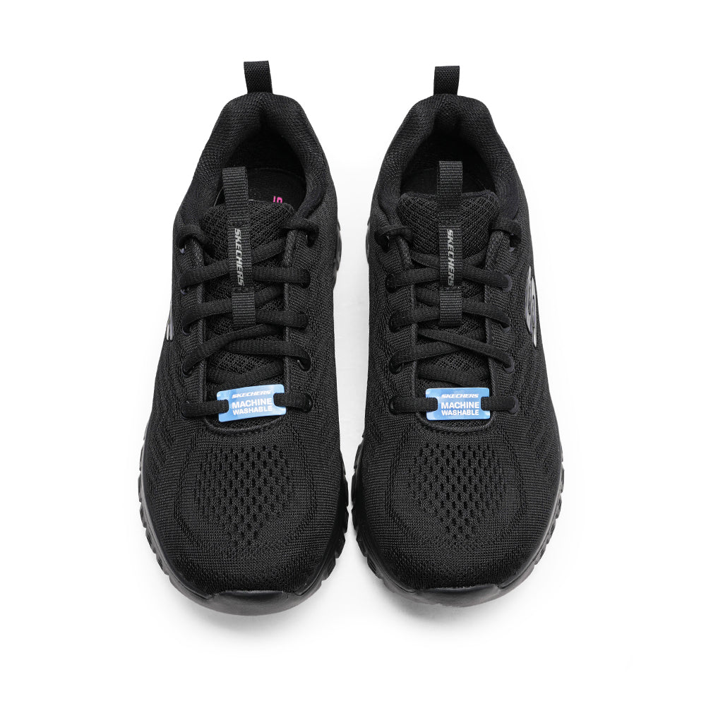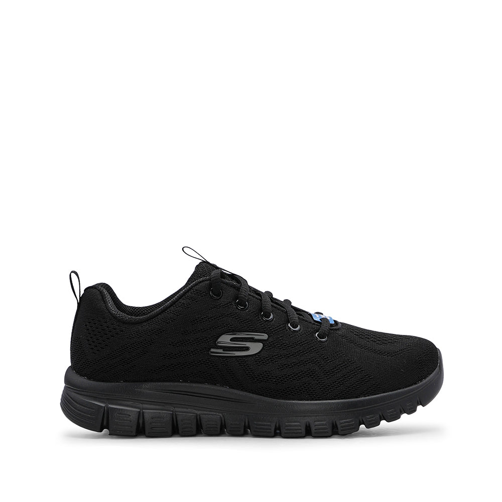 A Skechers, reconhecida pela qualidade e conforto, apresenta a Sapatilha Desportiva para Mulher em Preto. Este modelo alinha uma silhueta moderna a uma malha superior respirável, que envolve o pé com leve flexibilidade, mantendo um visual limpo e sofisticado. Detalhes como o puxador no calcanhar e os ilhós metálicos completam um design discreto e elegante.
